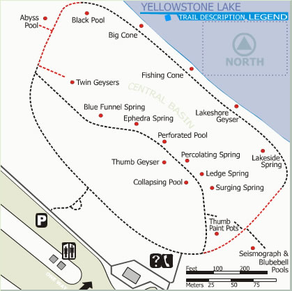 - Yellowstone Lake Area, West Thumb Area et Old Faithful Area.